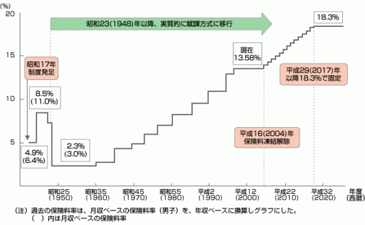 団塊の世代が生まれた昭和23年に3%だった厚生年金保険料はいまや17.8%。