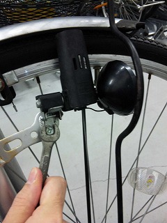 ここに、買ったばかりの新型ダイナモライトを取り付けます。