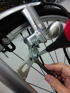 11ミリのレンチでナットを緩めて、ダイナモライトを外します。