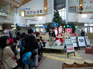 でも、屋内の会場はこの通り、サンタさんも登場して大盛り上がり。