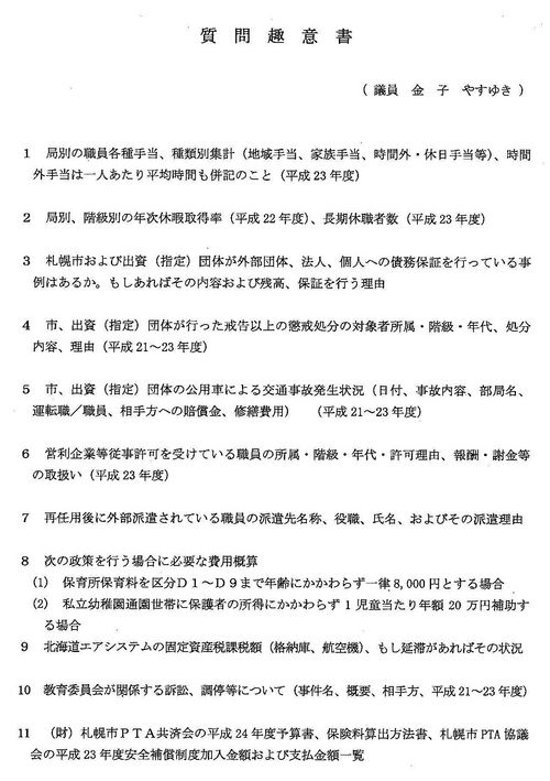 イチロー様、質問趣意書はこれからも定例会ごとにバンバン