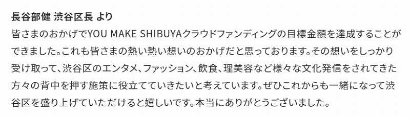 クラウドファンディングの公式HPで長谷部区長はこう語っています。