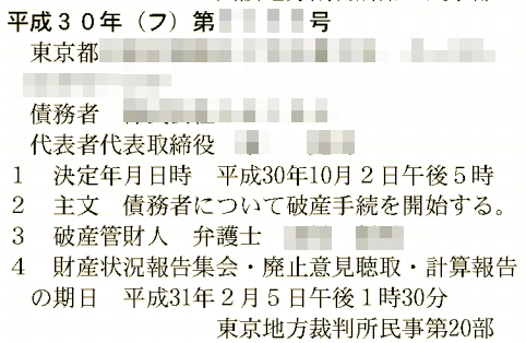 平成30年10月2日付で裁判所の破産手続き開始が官報に掲載されていました。