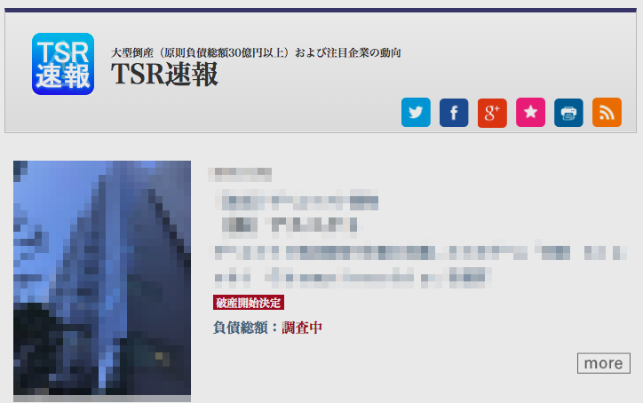 『東京商工リサーチ」の大型倒産速報(本文とは関係ありません)