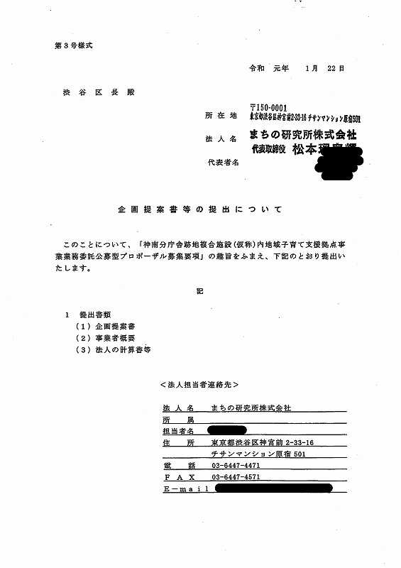 ある会社が渋谷区役所の公募プロポーザルに提出した書類です。