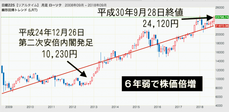 第二次安倍内閣が発足した平成24年12月26日の日経平均は10,230円。
