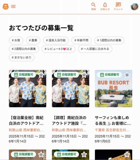 おてつたびサイトの募集画面の一例です。