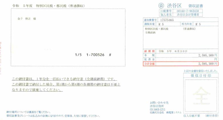 渋谷区から引っ越したあとも、区役所から驚くほどの住民税請求書が届きました。