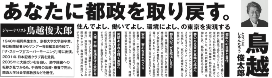いままでこういう本音の政策を掲げる候補は珍しかったのではないでしょうか。